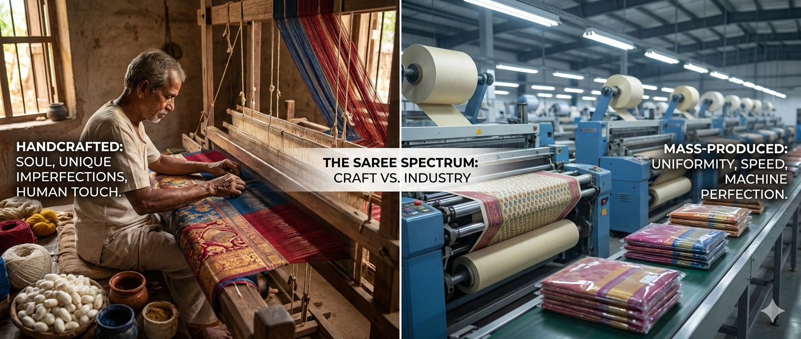 Budget-friendly saree searches are skyrocketing across marketplaces, but the real story behind ₹500–₹1000 sarees is rarely discussed. This blog explores the pros, hidden costs, and the growing impact of influencer-driven fast fashion on India’s handloom heritage — helping conscious shoppers make smarter, more meaningful choices.