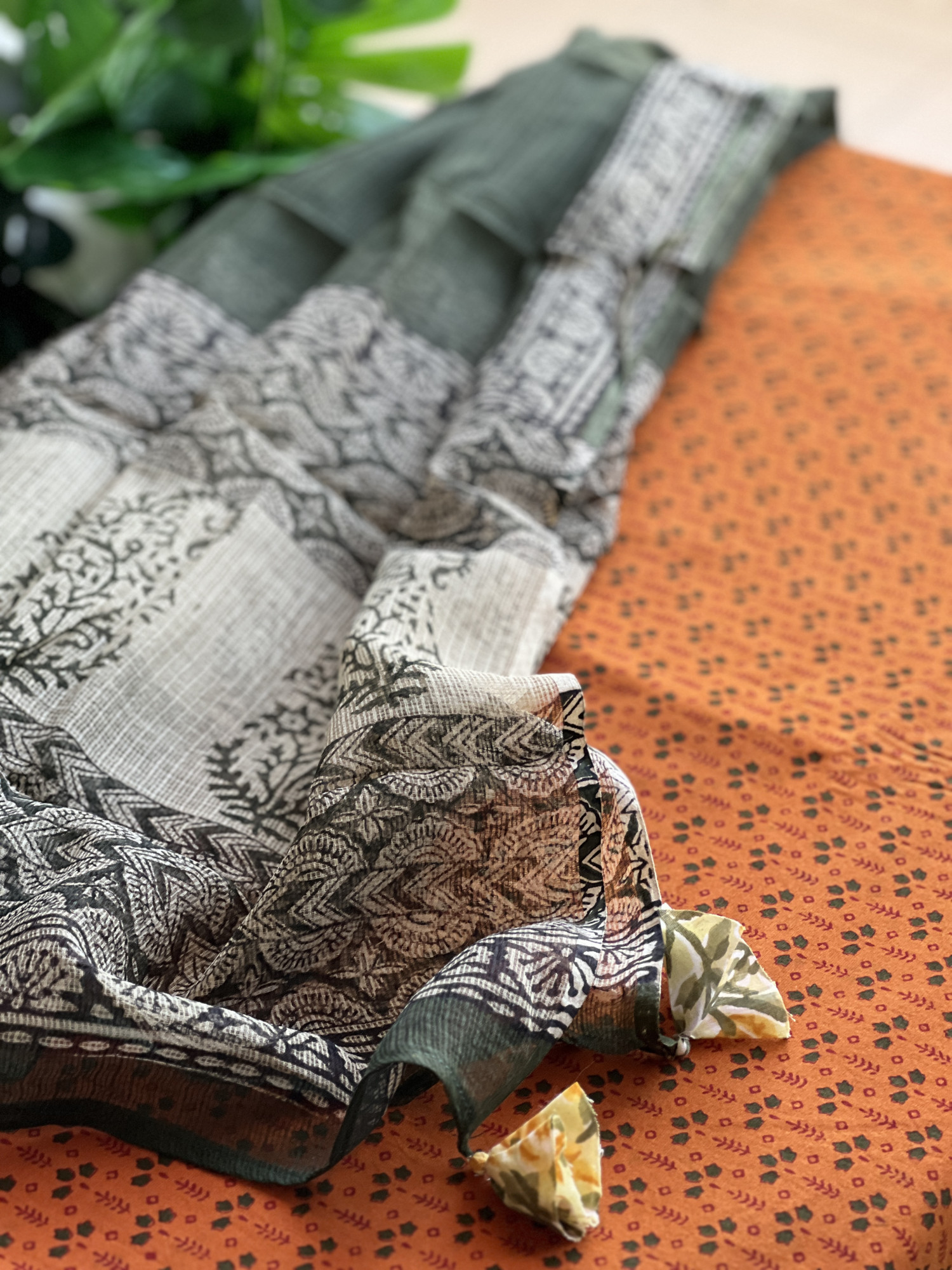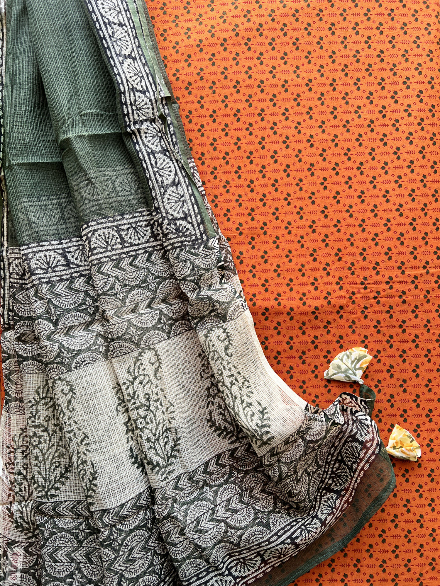 Handblock printed kota dupatta with pure cotton kurta fabric. No bottom included.