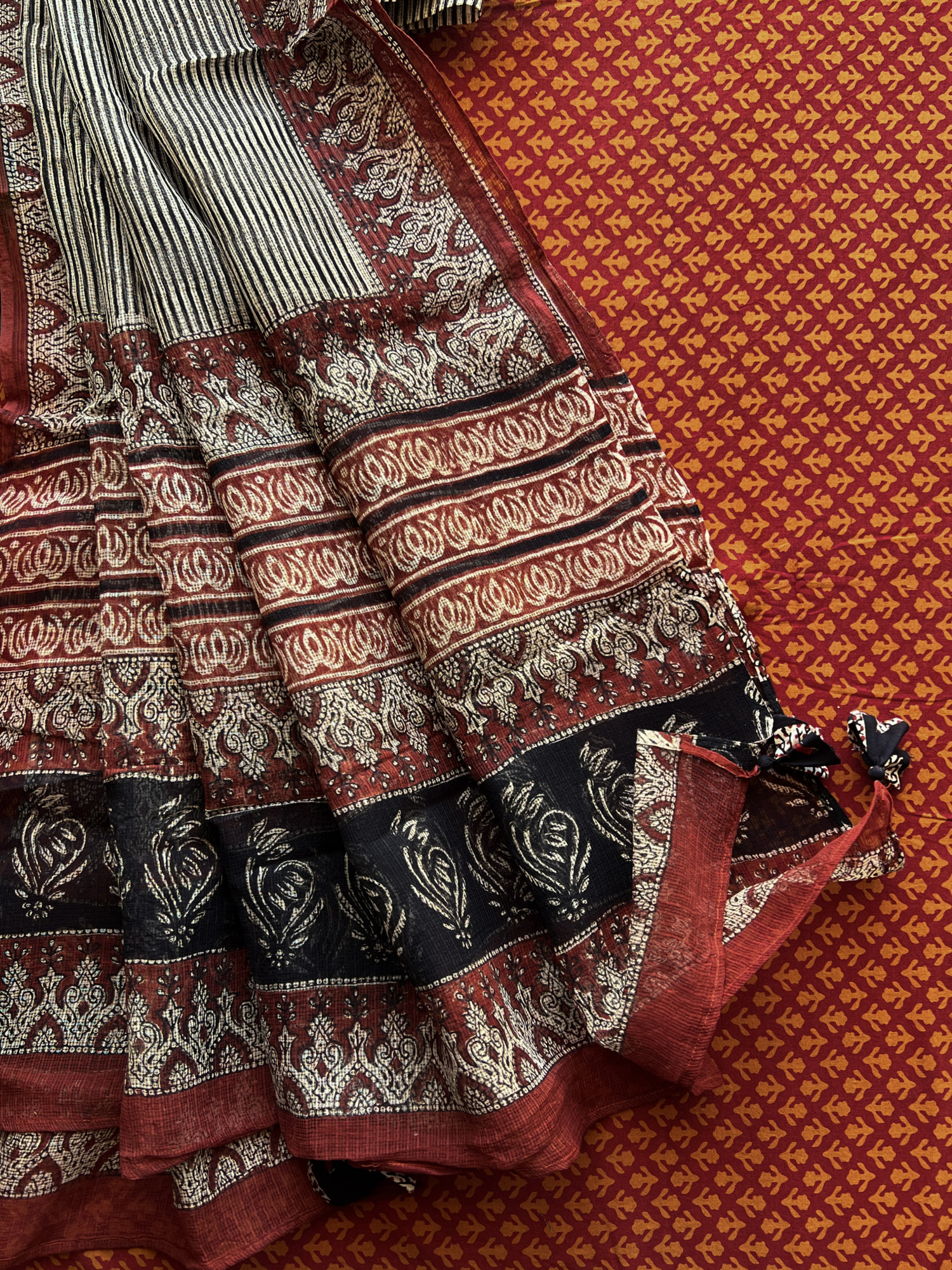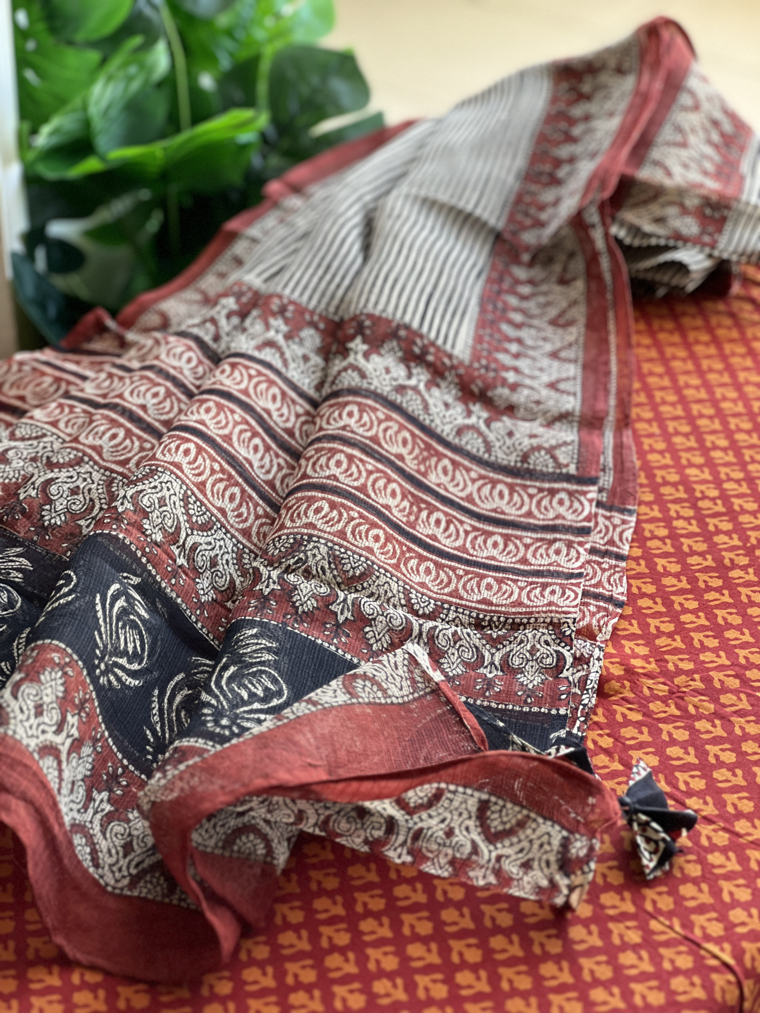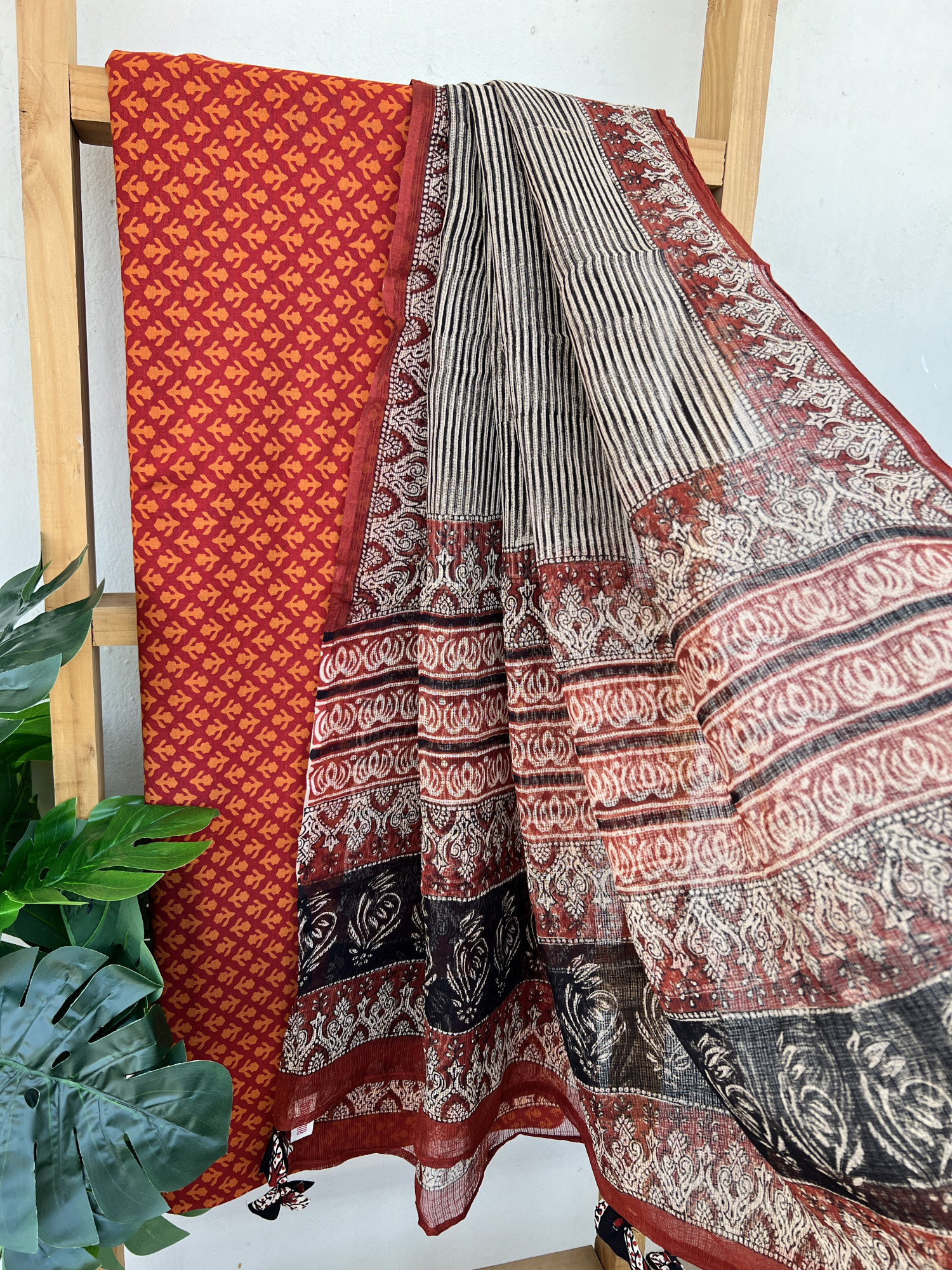 Handblock printed kota dupatta with pure cotton kurta fabric. No bottom included.