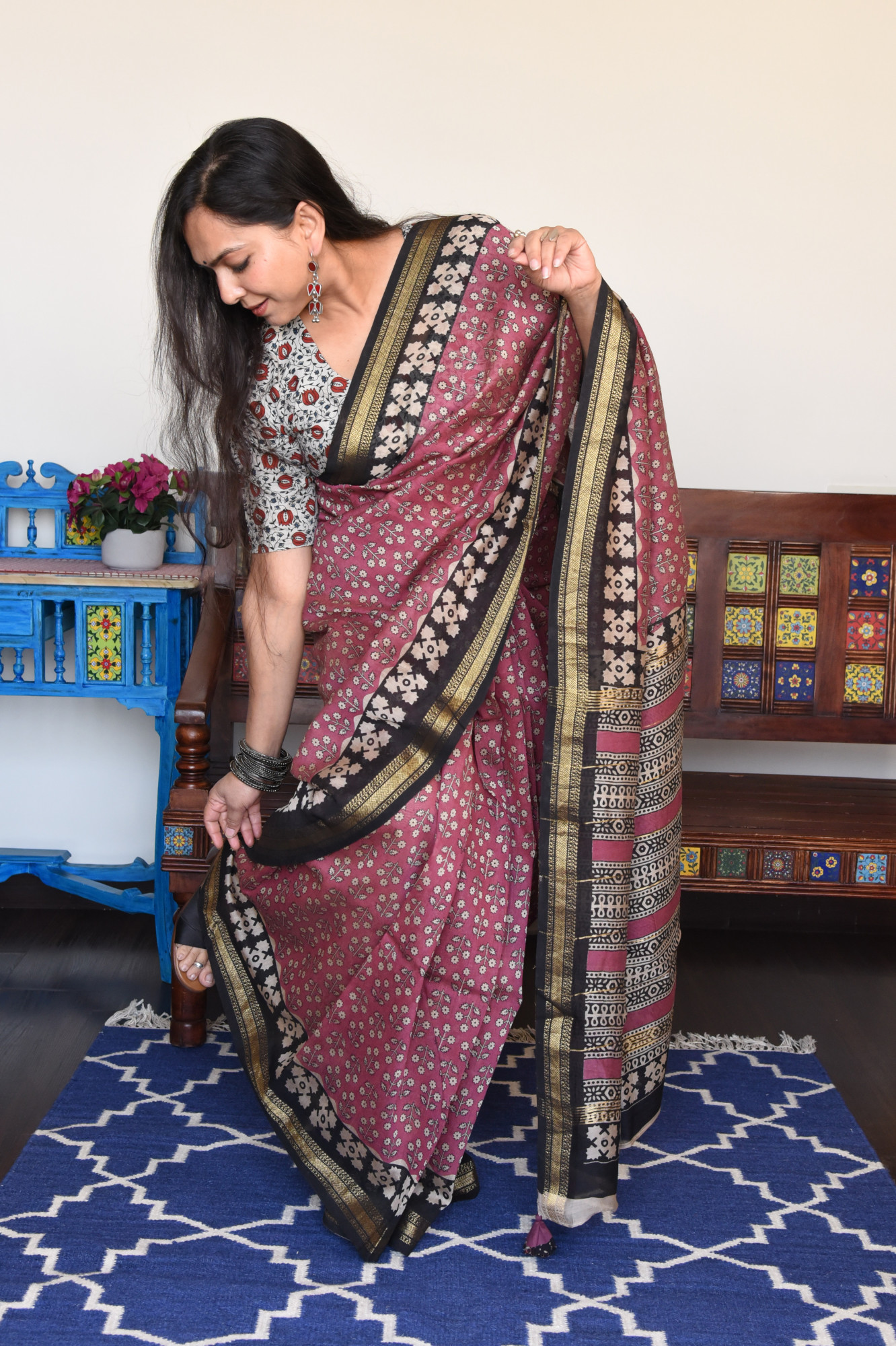 Antarang’s handblock print sarees are a celebration of refined craftsmanship and timeless design. Each saree is handcrafted by skilled artisans using traditional wooden blocks, making every piece an exclusive work of art. Crafted in elegant cotton silk fabrics, these sarees offer a graceful drape, subtle sheen, and effortless sophistication. Natural variations in print and colour reflect the authenticity of handblock printing, adding to the charm of true handcrafted luxury. Shop handblock sarees online at Antarang and experience artisanal sarees designed for women who appreciate heritage, exclusivity, and understated elegance.