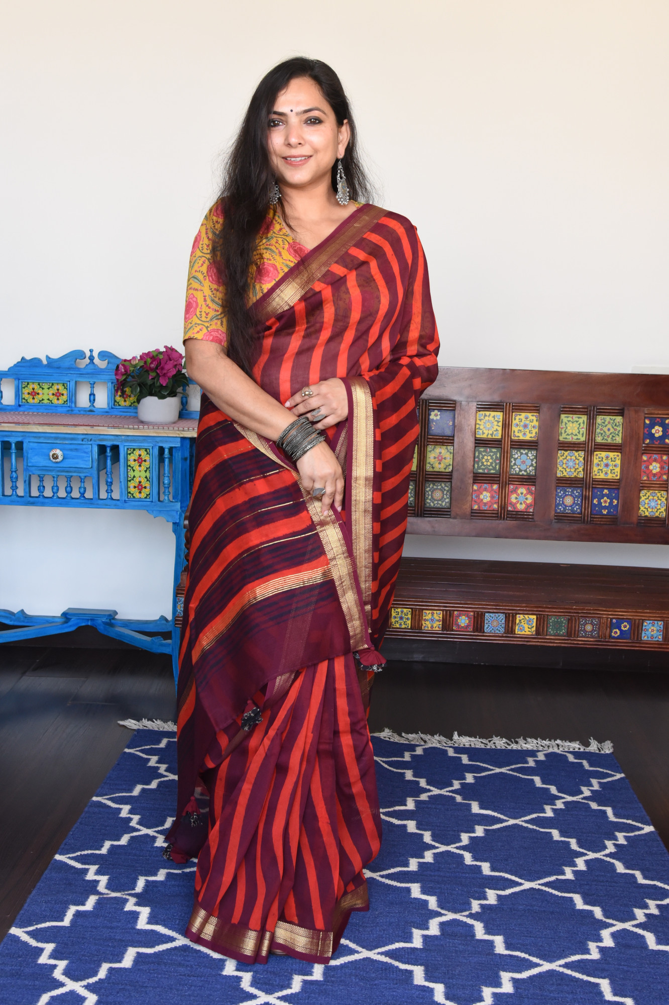 Antarang’s handblock print sarees are a celebration of refined craftsmanship and timeless design. Each saree is handcrafted by skilled artisans using traditional wooden blocks, making every piece an exclusive work of art. Crafted in elegant cotton silk fabrics, these sarees offer a graceful drape, subtle sheen, and effortless sophistication. Natural variations in print and colour reflect the authenticity of handblock printing, adding to the charm of true handcrafted luxury. Shop handblock sarees online at Antarang and experience artisanal sarees designed for women who appreciate heritage, exclusivity, and understated elegance.