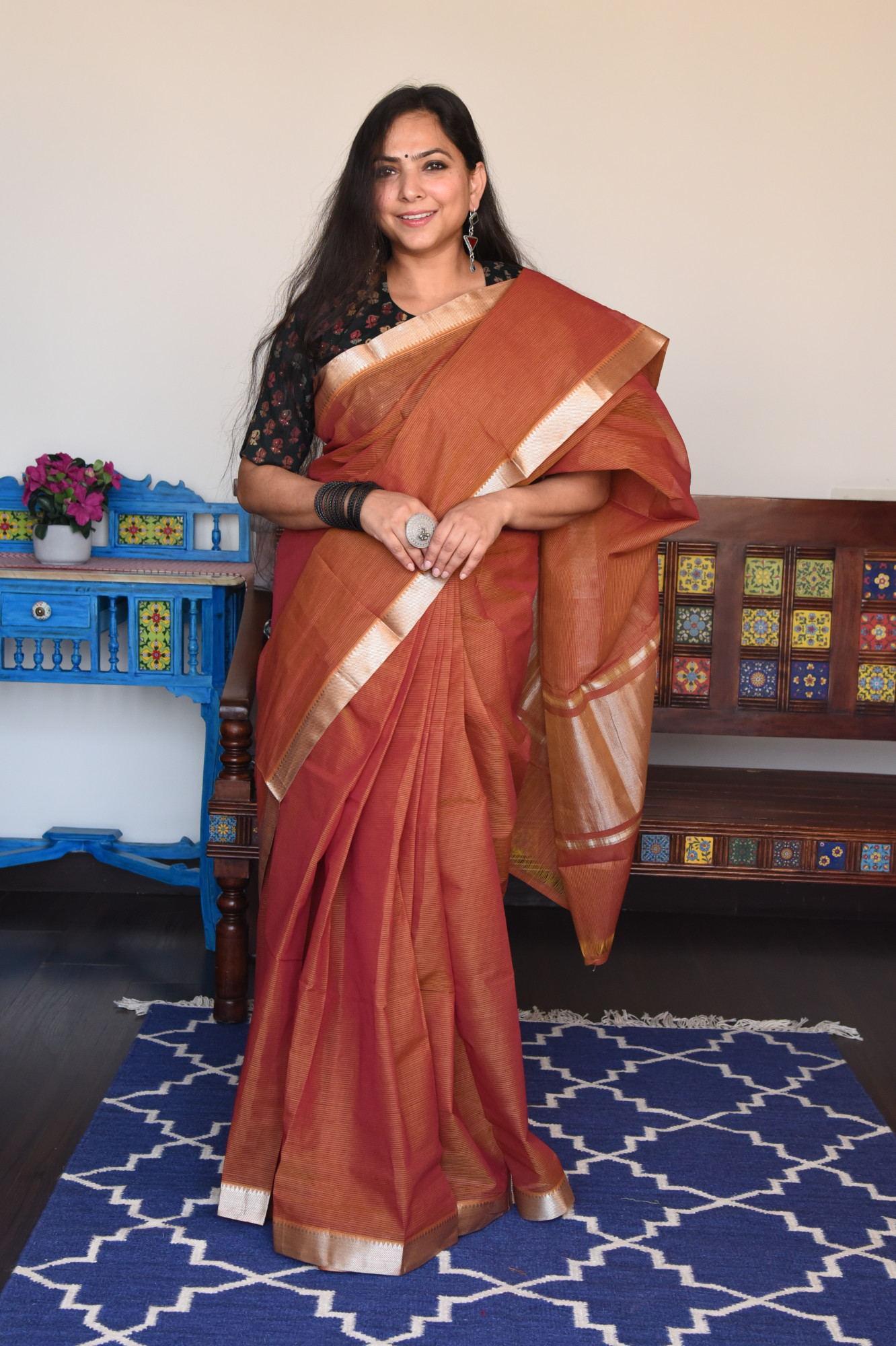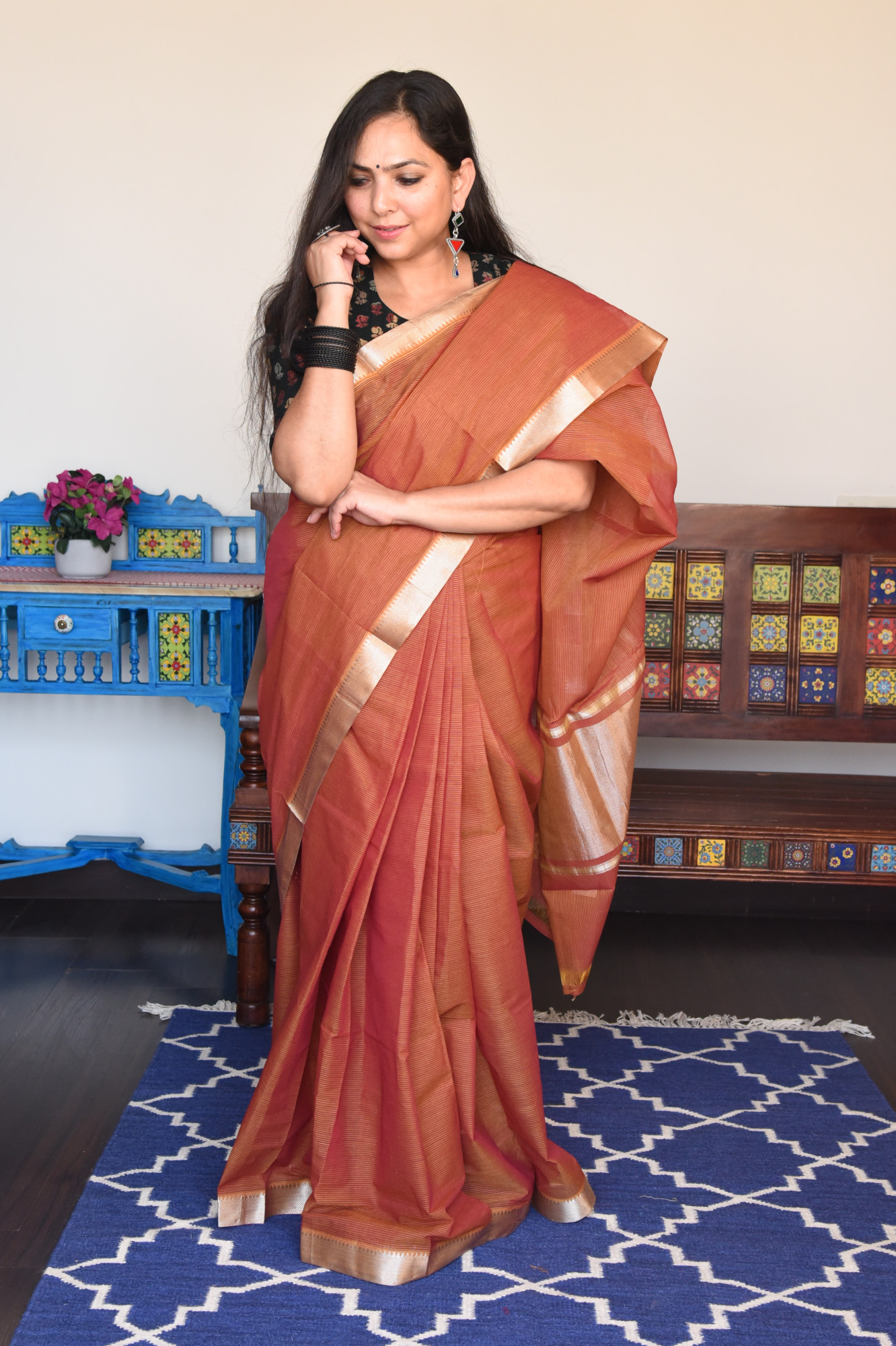 Dry clean only. Since this is a handwoven/ handcrafted product, there might be slight irregularities and unevenness in weave, pattern or selvedges due to weaving process.