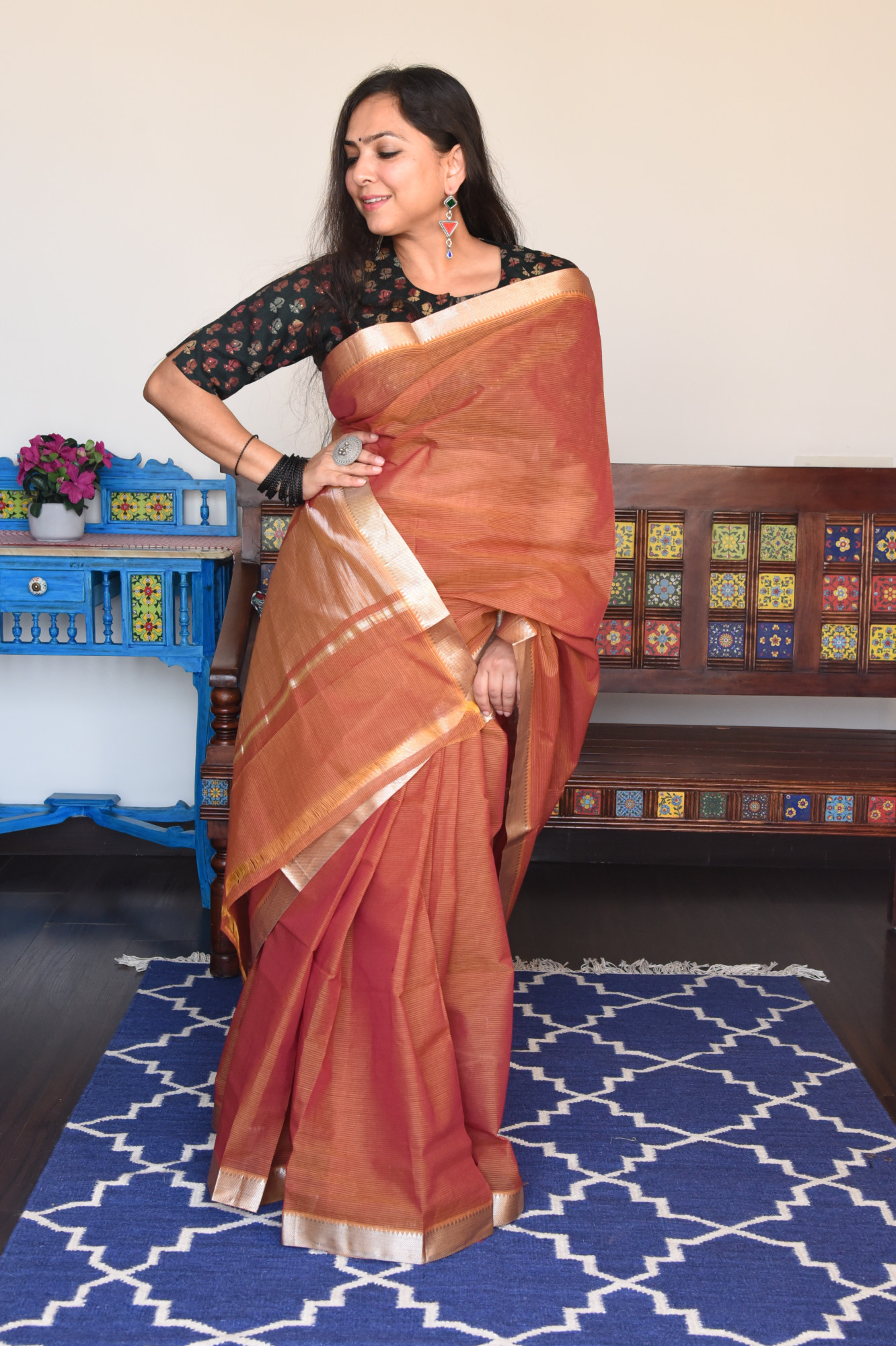 Fabrics tend to bleed out excess color in initial washes. Kindly allow for minor crafting defects which includes gap created by small broken thread at few places. This will not be termed or considered as defect.