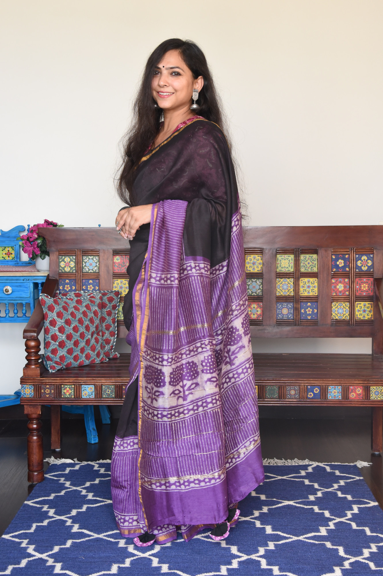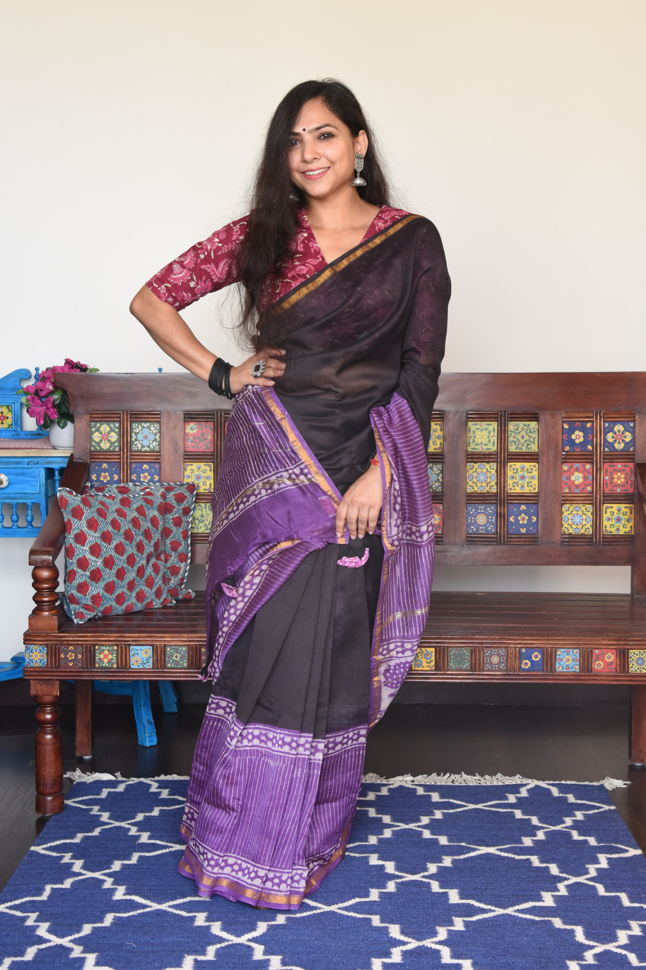 Dry clean only. Since this is a handwoven/ handcrafted product, there might be slight irregularities and unevenness in weave, pattern or selvedges due to weaving process and there can be some ink stains here and there due to the manual craft process. Fabrics tend to bleed out excess color in initial washes. Kindly allow for minor crafting defects.