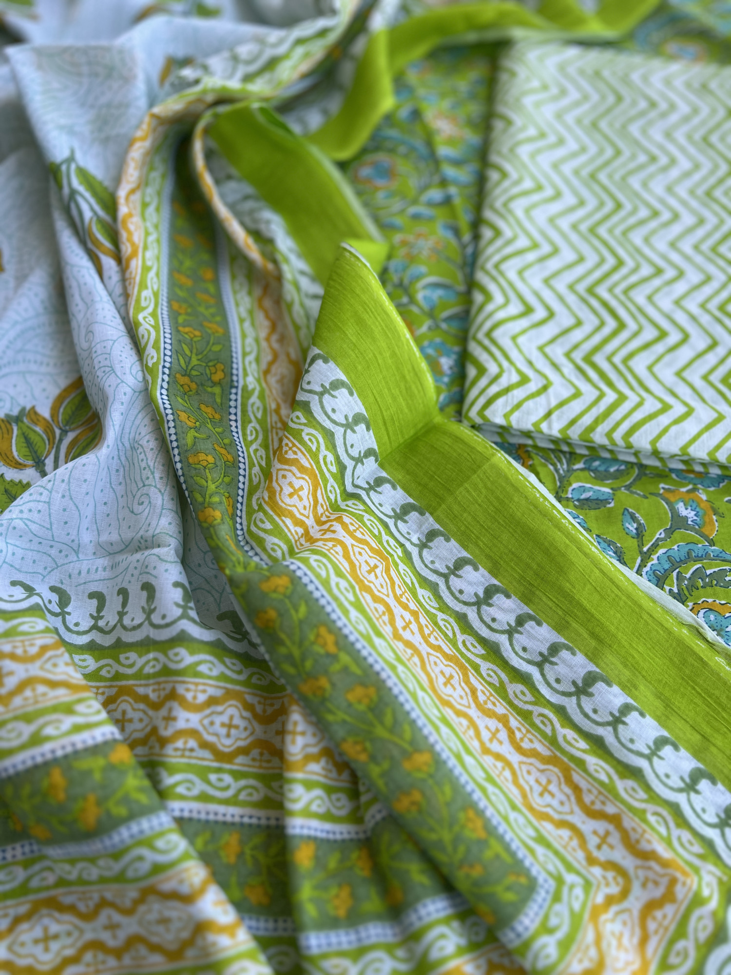 Printed Cotton suit set with cotton dupatta and cotton bottom.