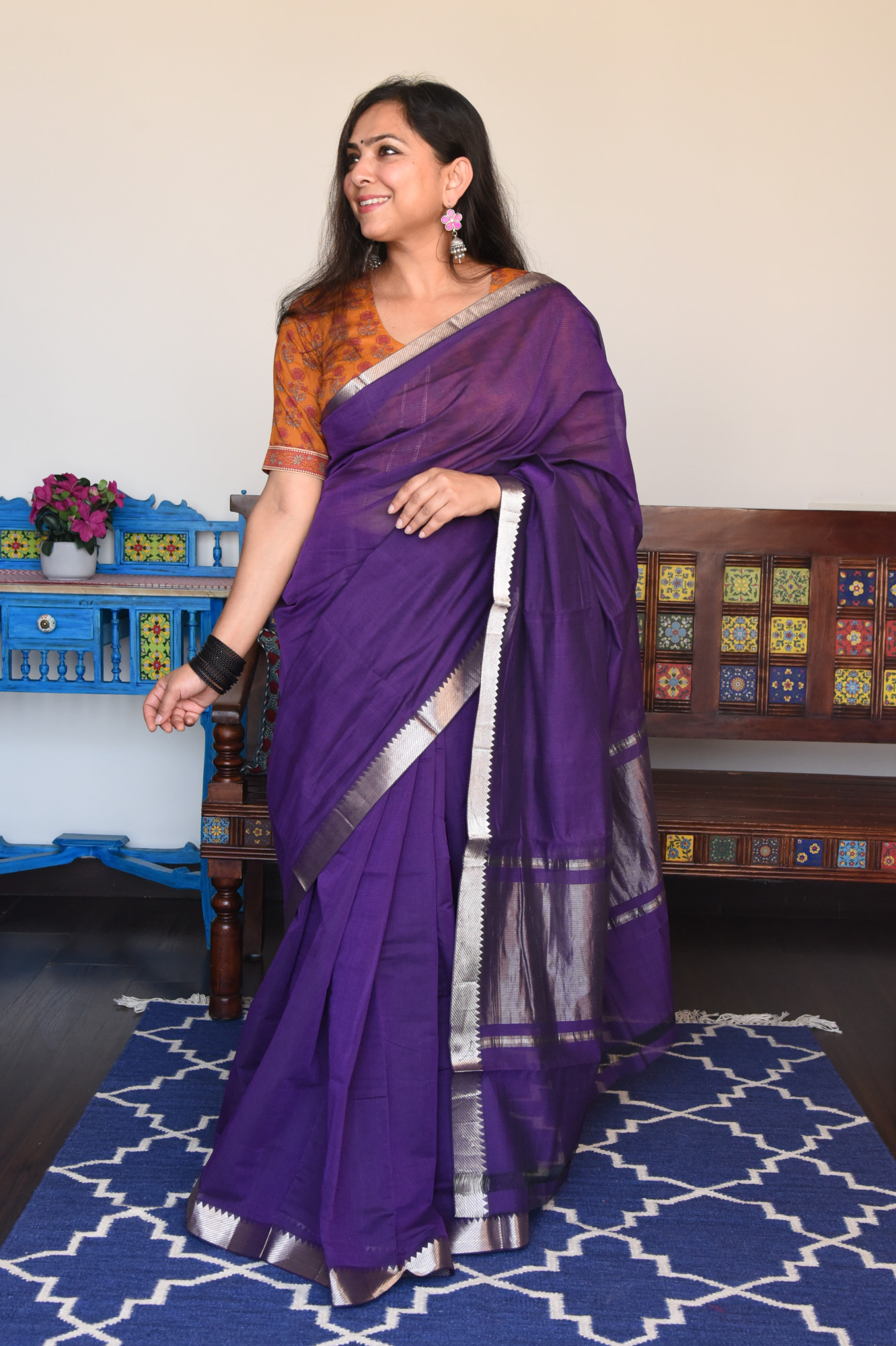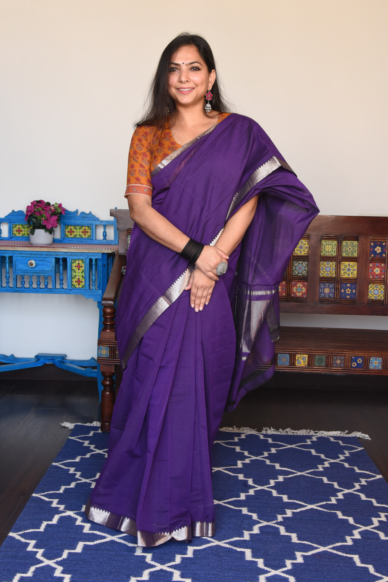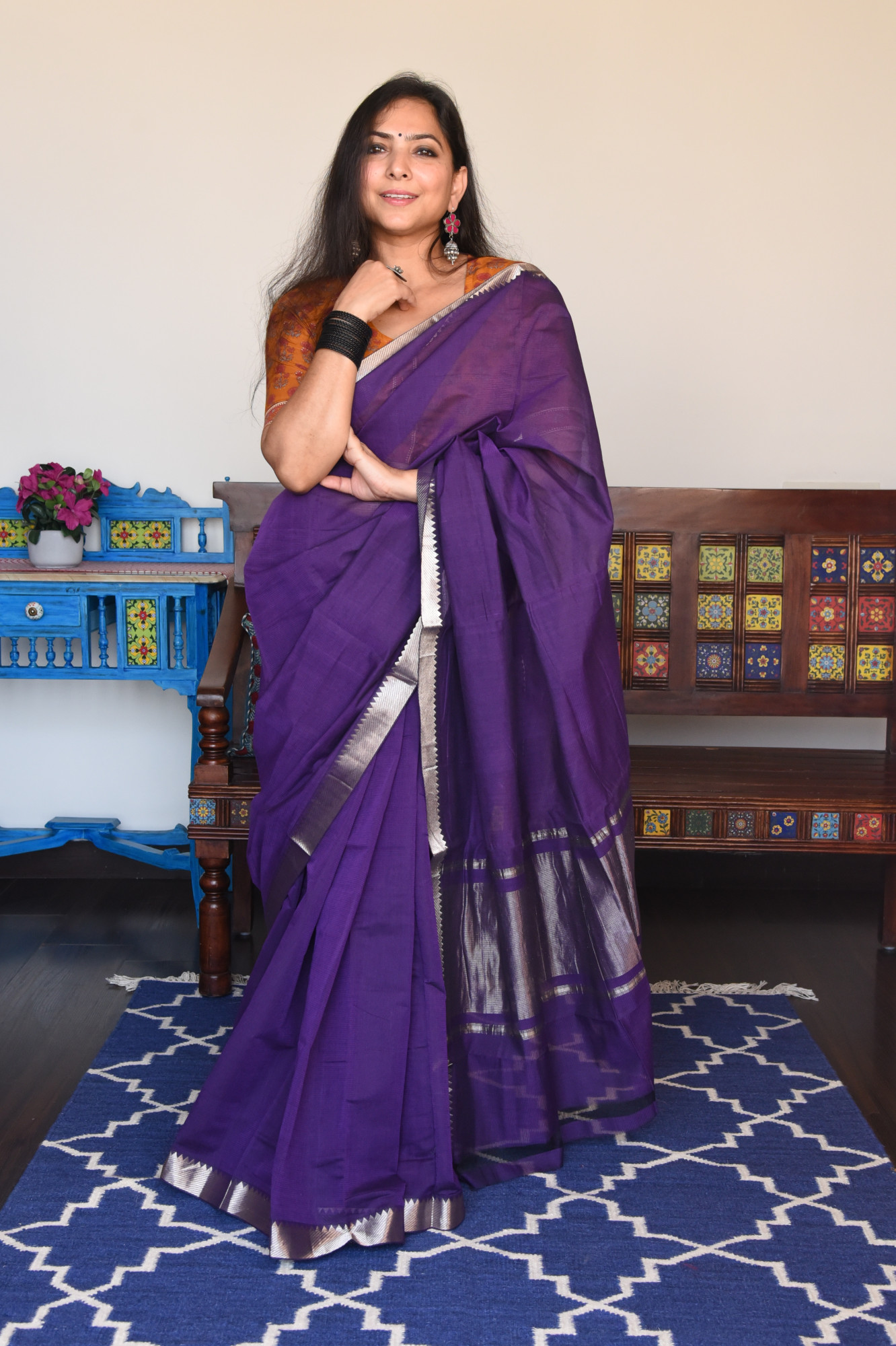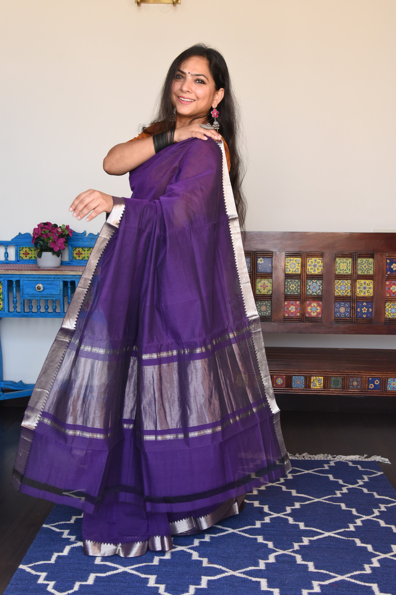 Mangalgiri missing weave cotton saree with silver zari nizam border and zari palla. Accessorised with self tassels.