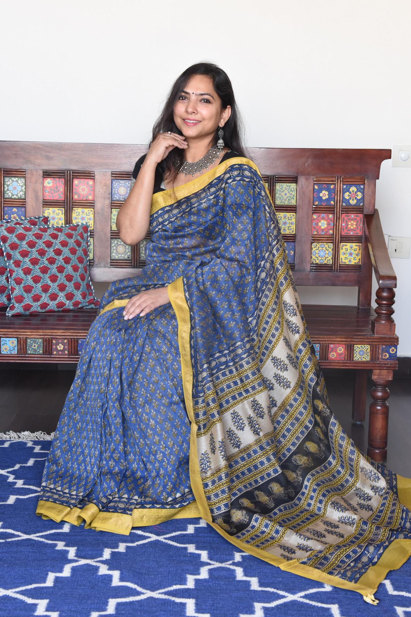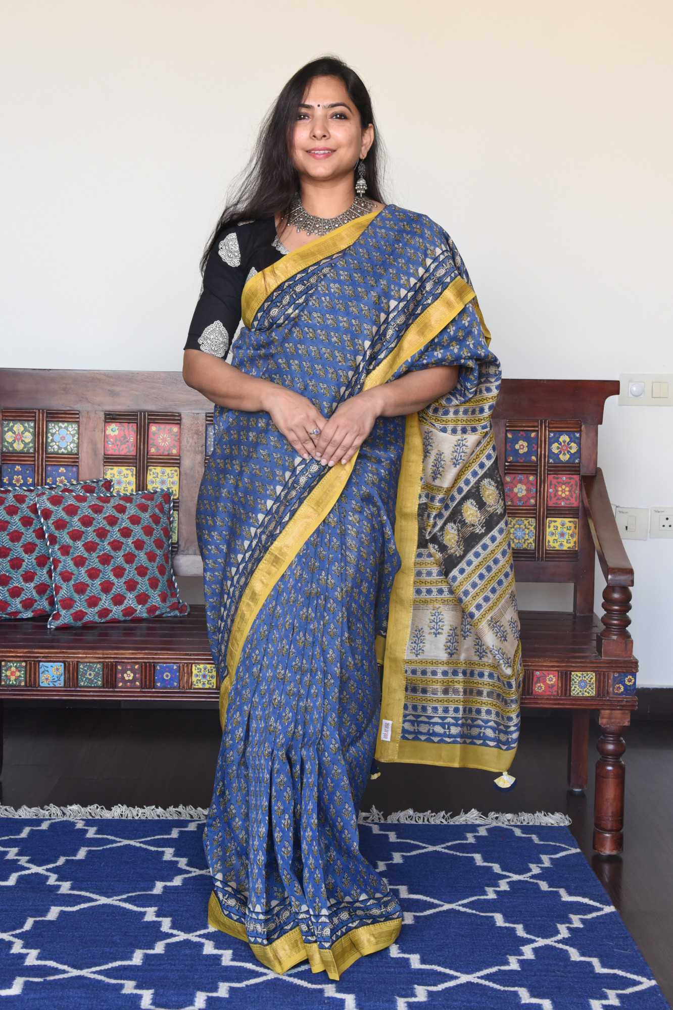 Dry clean only. Since this is a handwoven/ handcrafted product, there might be slight irregularities and unevenness in weave, pattern or selvedges due to weaving process and there can be some ink stains here and there due to the manual craft process. Fabrics tend to bleed out excess color in initial washes. Kindly allow for minor crafting defects.
