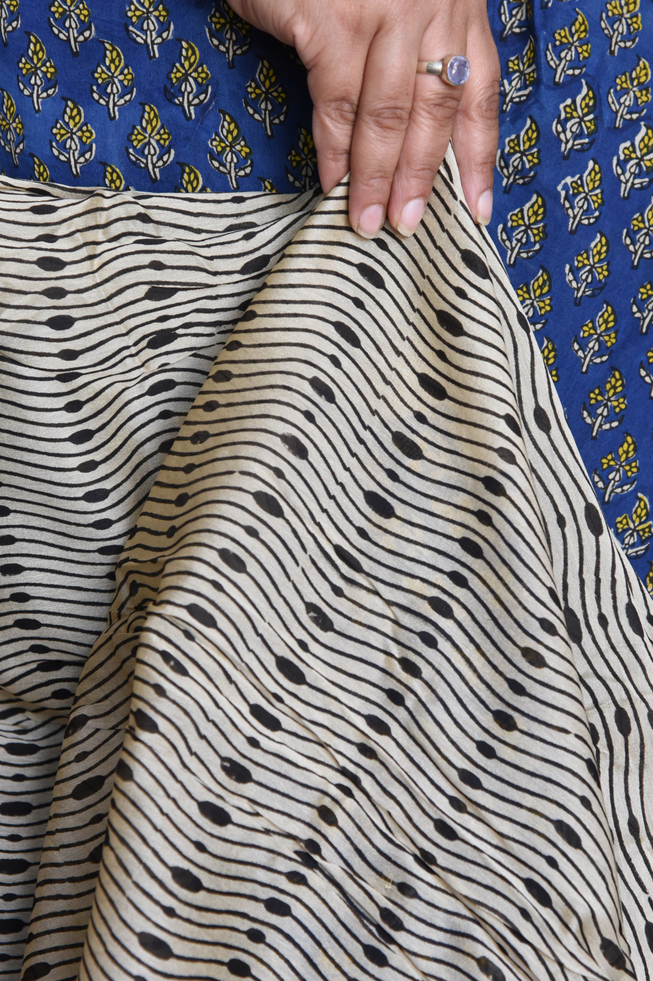 Dry clean only. Since this is a handwoven/ handcrafted product, there might be slight irregularities and unevenness in weave, pattern or selvedges due to weaving process and there can be some ink stains here and there due to the manual craft process. Fabrics tend to bleed out excess color in initial washes. Kindly allow for minor crafting defects.
