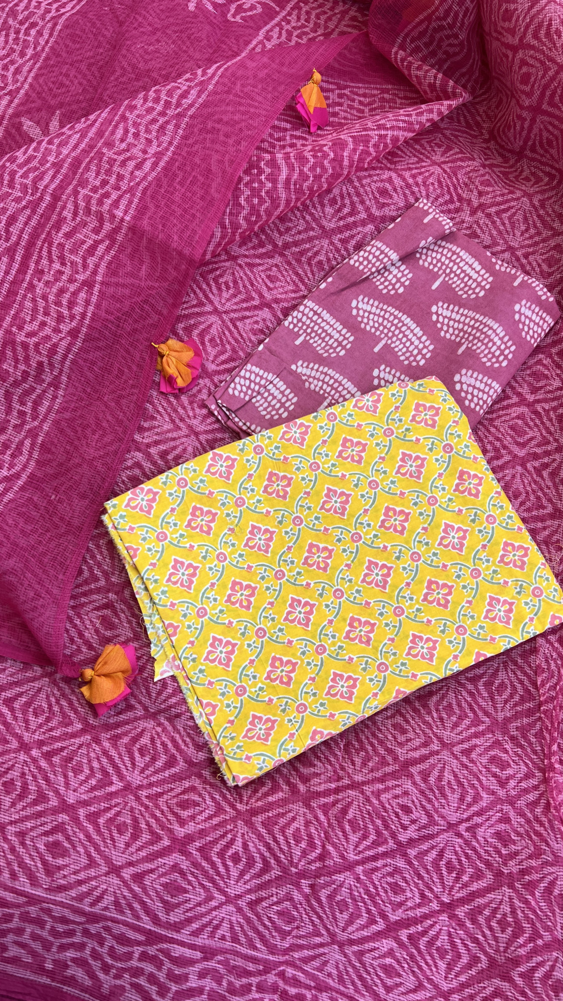 Kindly allow for minor crafting defects which includes gap created by small broken thread at few places. This will not be termed or considered as defect. Pin marks all over are considered absolutely normal as its an important step of dye or hand printing. A few colour stains or discolouration are completely acceptable as a mark of manual process.